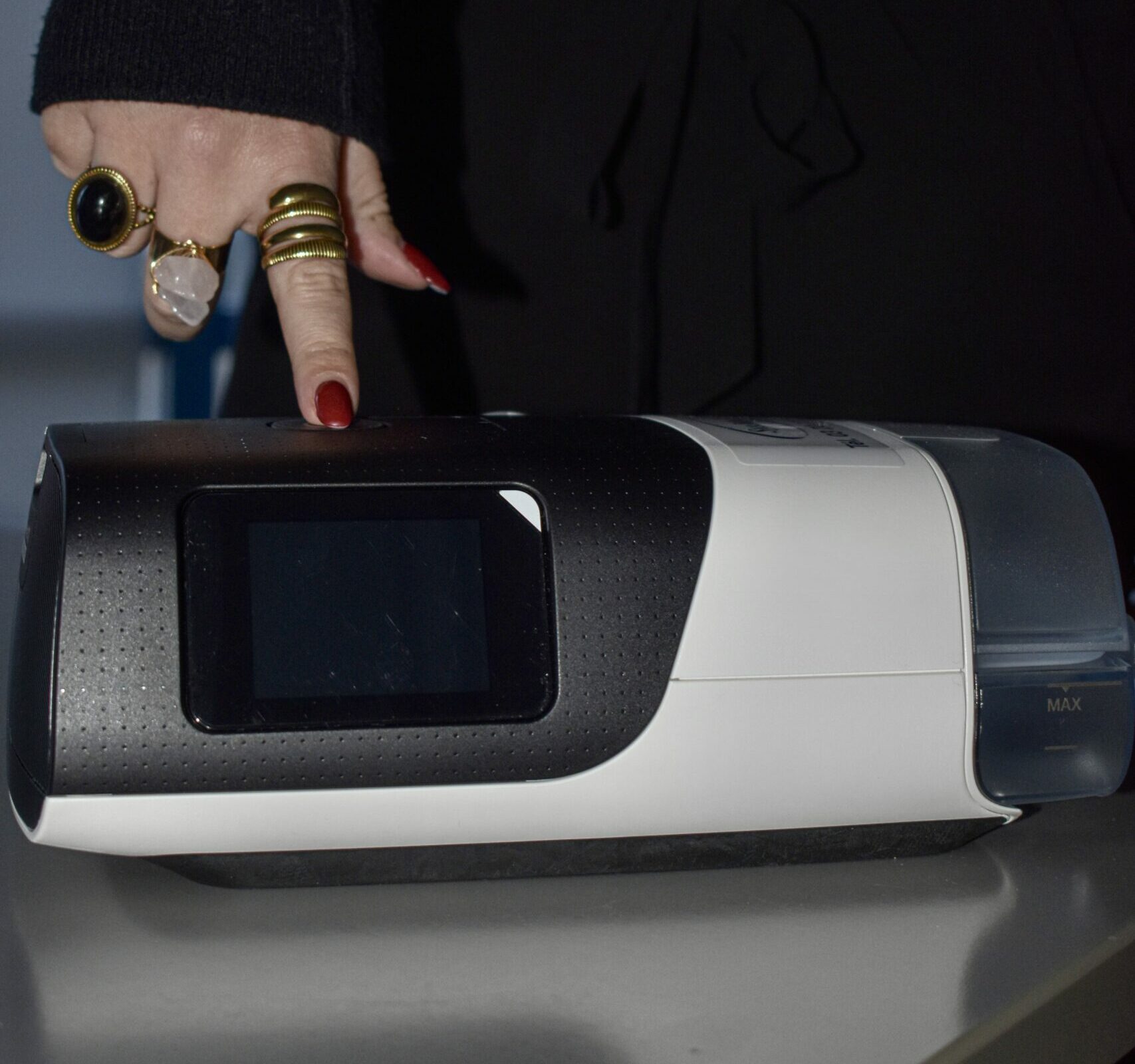 - Des fuites d’air (masque, circuit…) peuvent provoquer du bruit. Vérifiez le positionnement du masque sur votre visage ; si vous avez un humidificateur vérifiez que celui-ci soit bien enclenché et fermé.